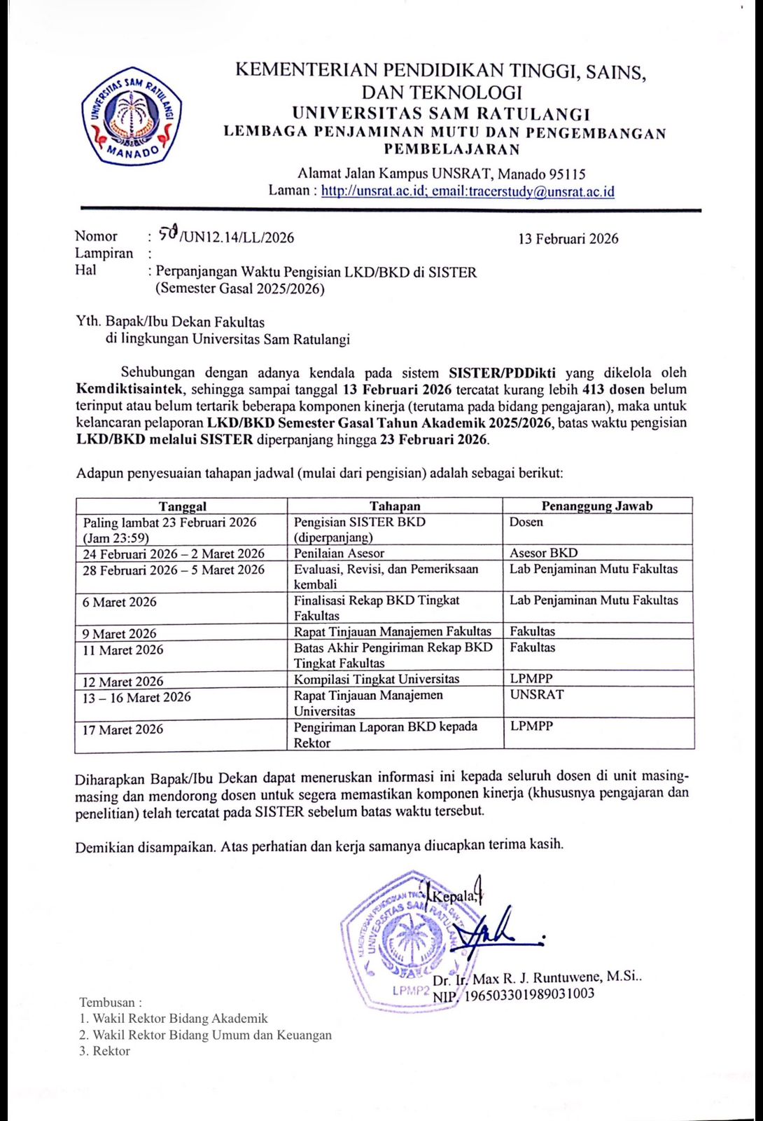 Perpanjangan Pengisian BKD Semester Ganjil 25-26